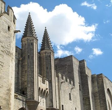 Le Palais des Papes, situé à Avignon, est un monument historique emblématique, ayant servi de résidence aux papes au XIVe siècle, et témoigne de l'importance de la ville durant le Moyen Âge.